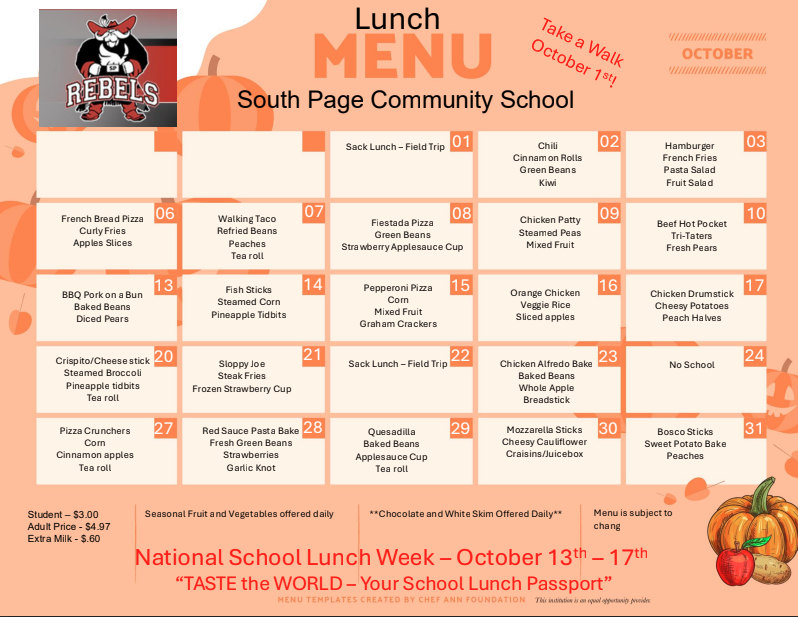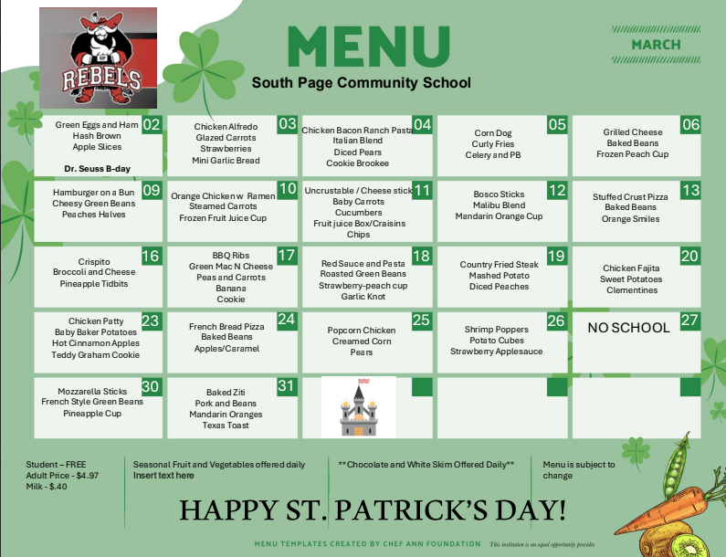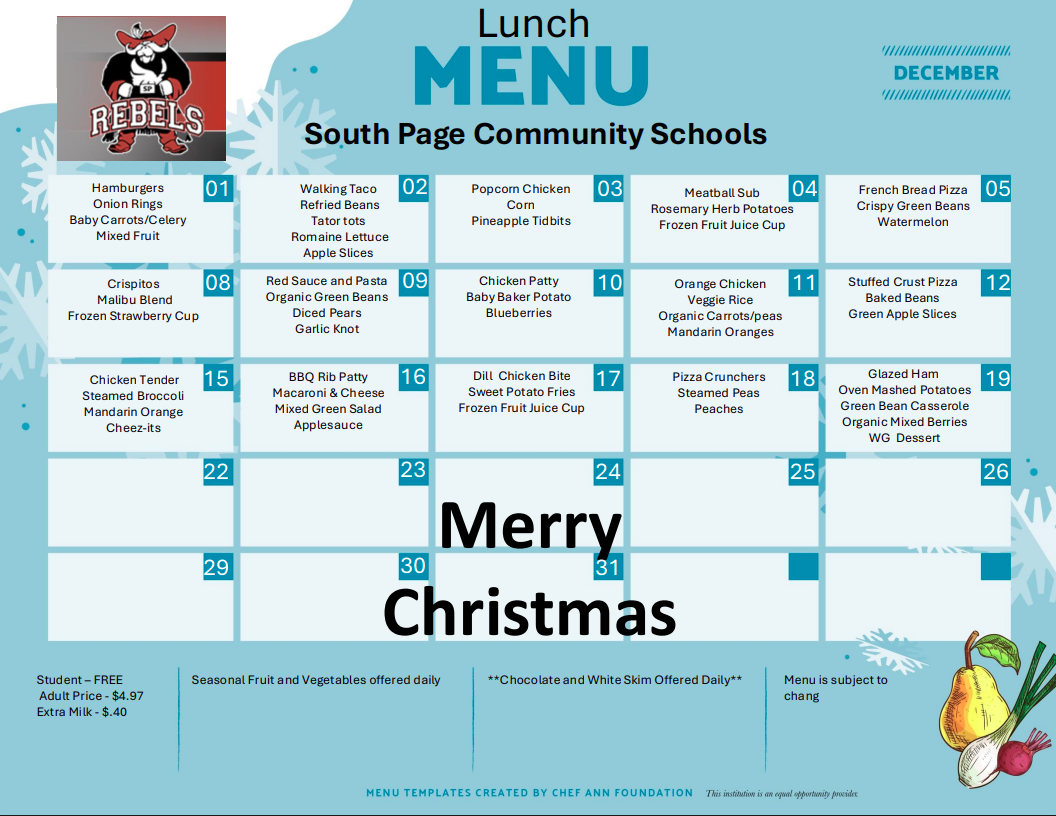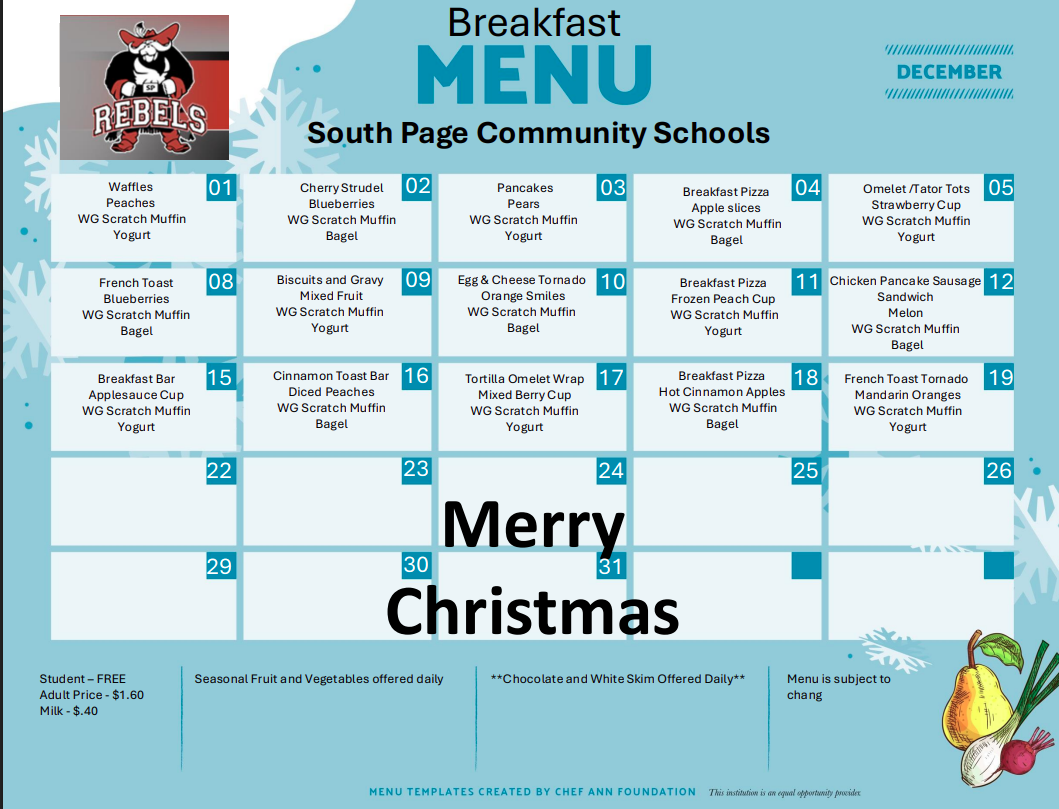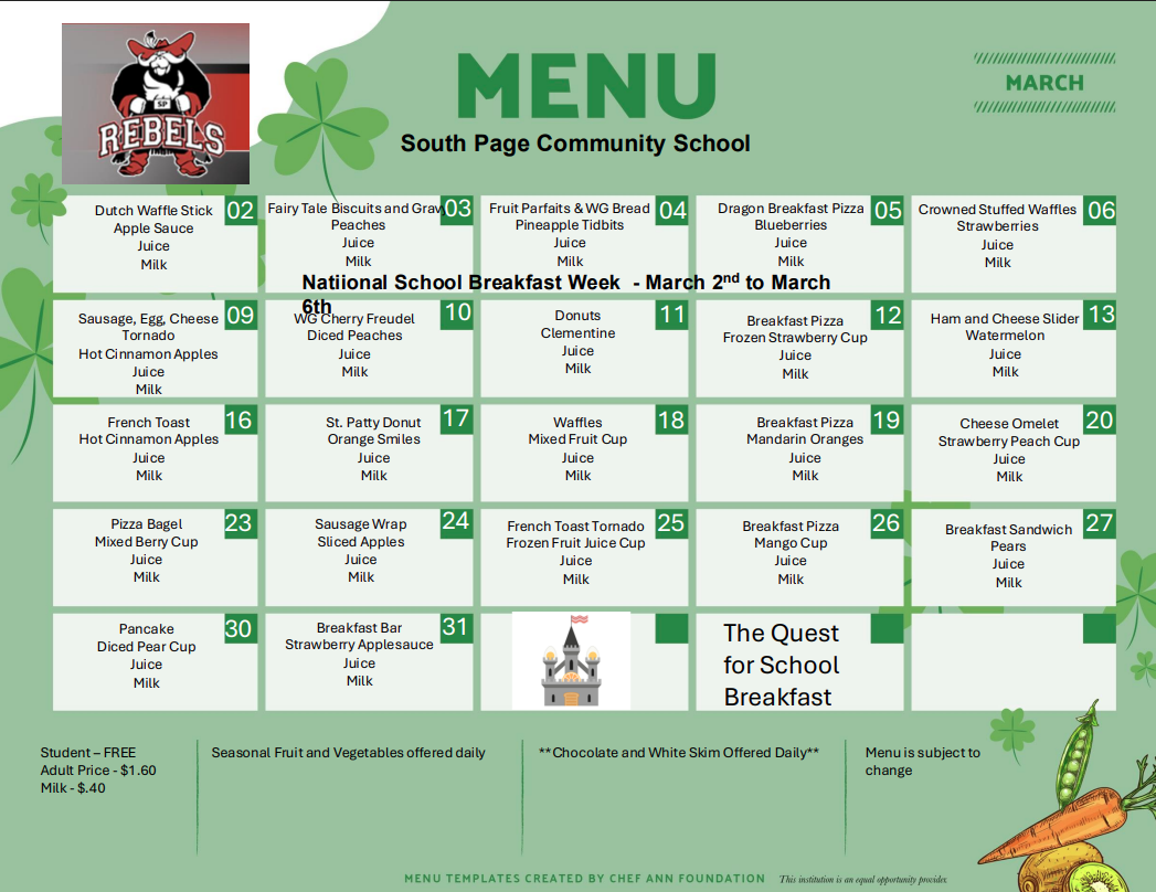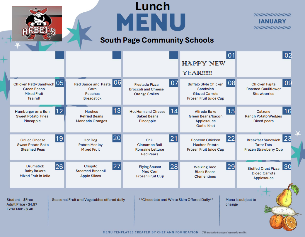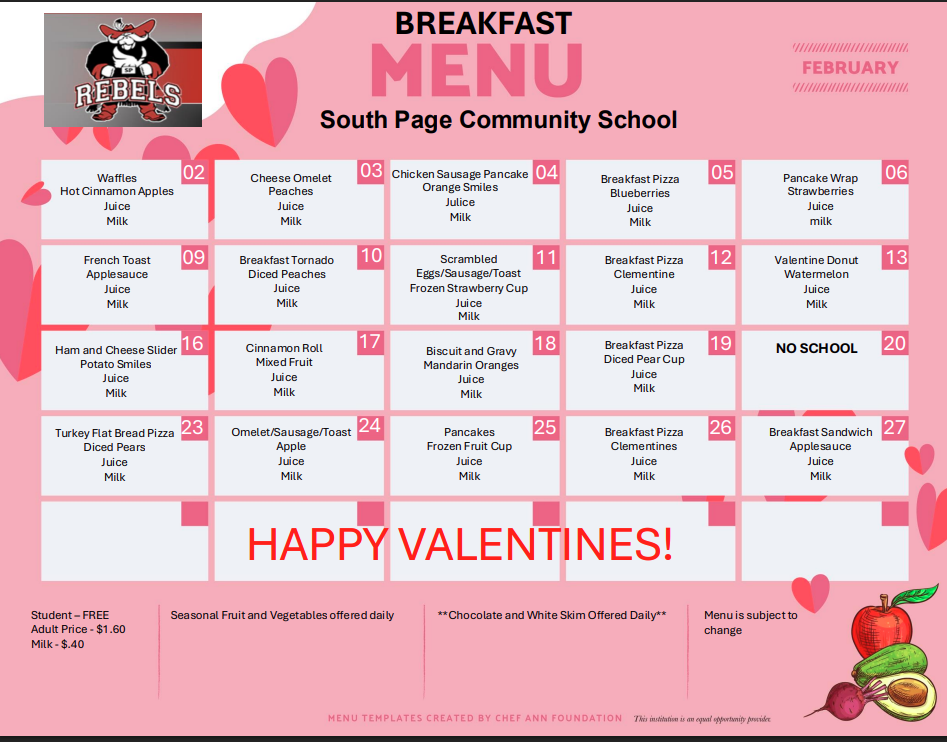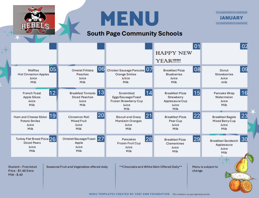 | *USDA Equal Opportunity Provider and all meals are subject to change. | |